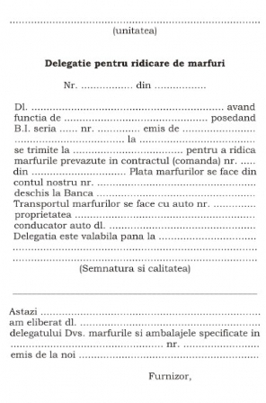 - Delegatie ridicare marfuri a6 100f